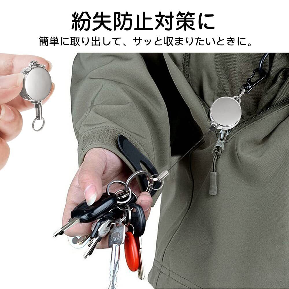【多用途】リール式キーホルダーで、IDケース、パスケース、カギ、趣味の小物等、様々な物にリール機能を付属出来る。