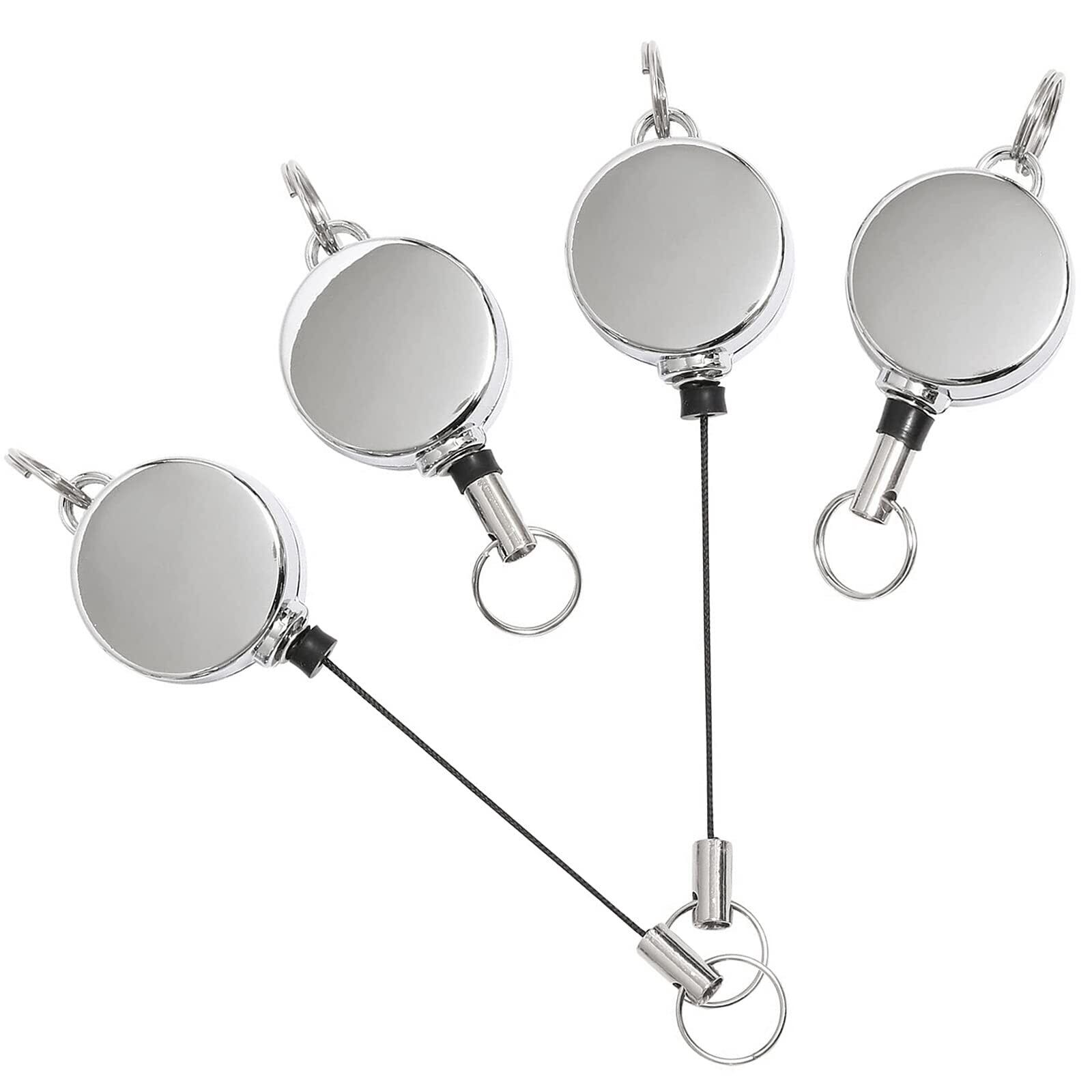 [サムコス] 4個セット リールキーホルダー 亜鉛合金 リールキー 伸縮自在 パスケース リール 金具 リールストラップ 吊り下げ名札用