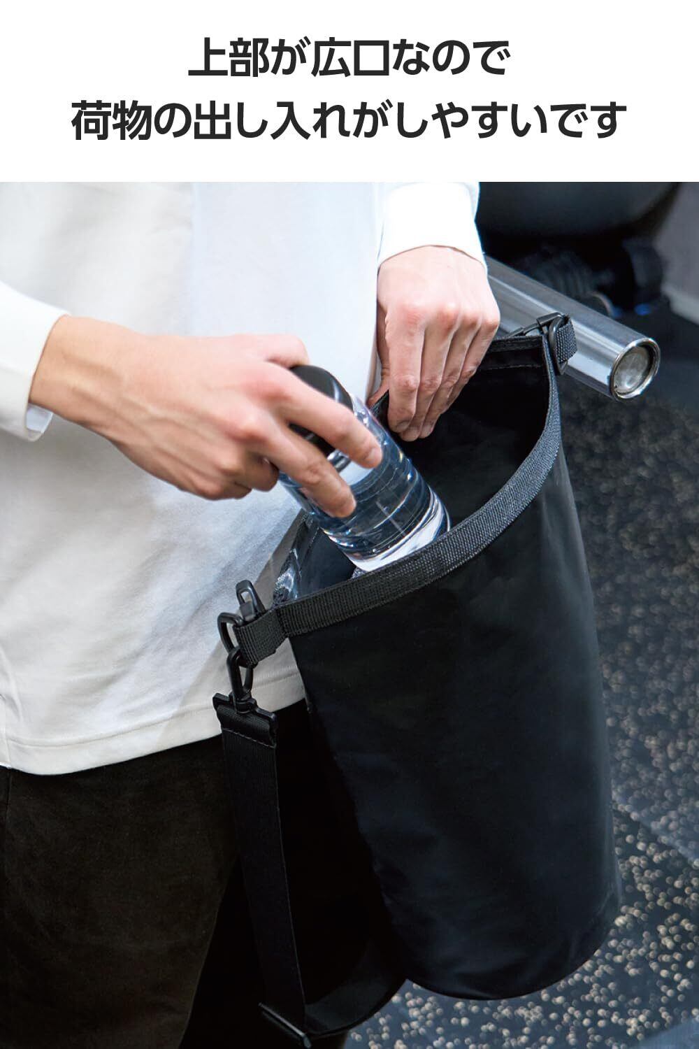 JIS保護等級IP55相当の防水・防塵性能で、スマートフォンや財布、タオルなど濡らしたくないものを入れて持ち運べる防水・防塵バッグです。