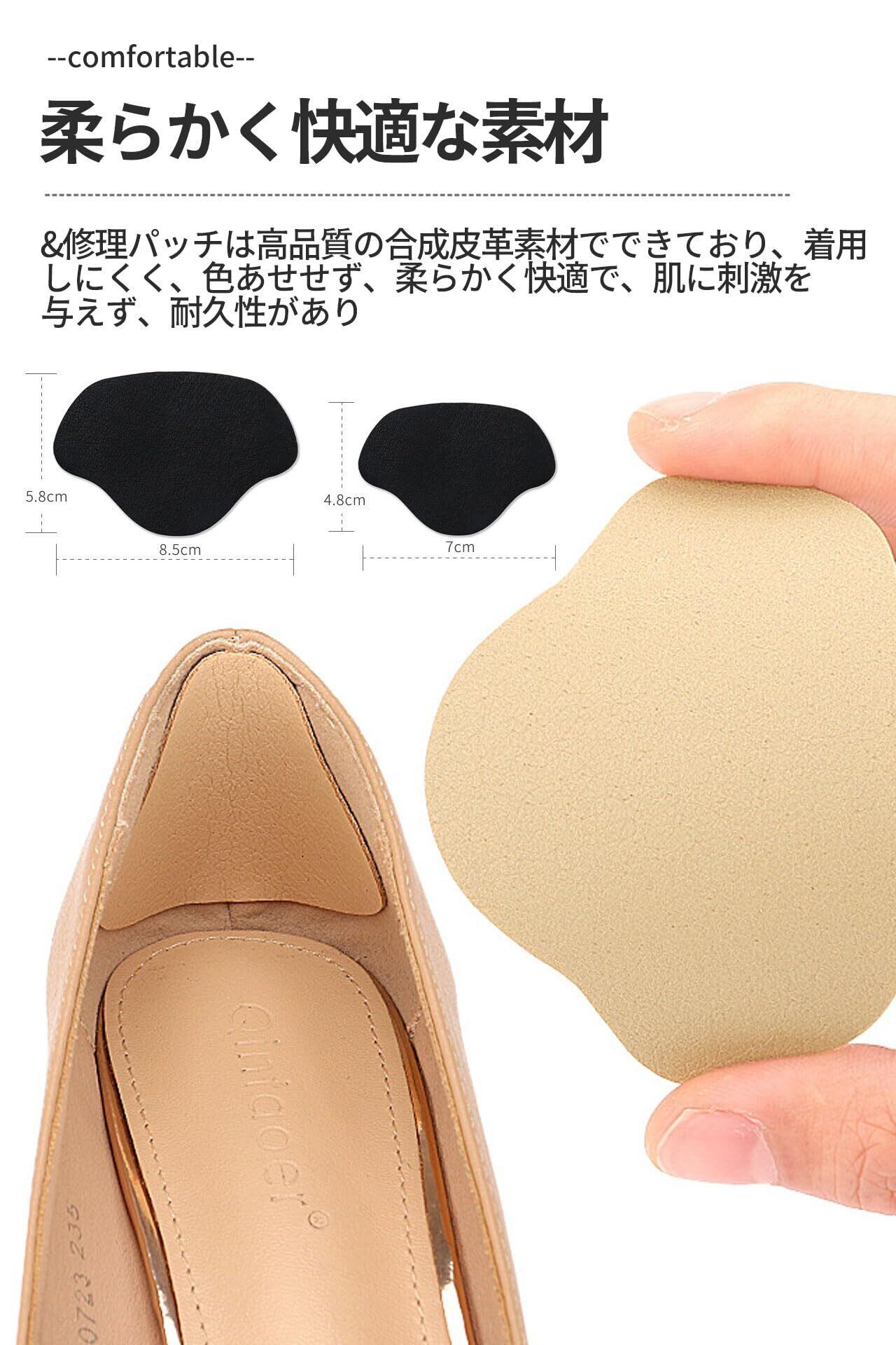 【使いやすい&ソフトで快適な素材】 シールタイプなので、簡単に貼り付けることができます。シールをはがして貼るだけで、靴の内側の擦り傷や破れを補修できます。かかと部分の汚れやホコリを布などで拭き取り、貼り付けてください。補修用ステッカーは高品質の合成皮革素材を使用しており、磨耗しにくく、色あせがなく、ソフトで快適、肌に刺激がなく、耐久性に優れ、お金を節約することができます。