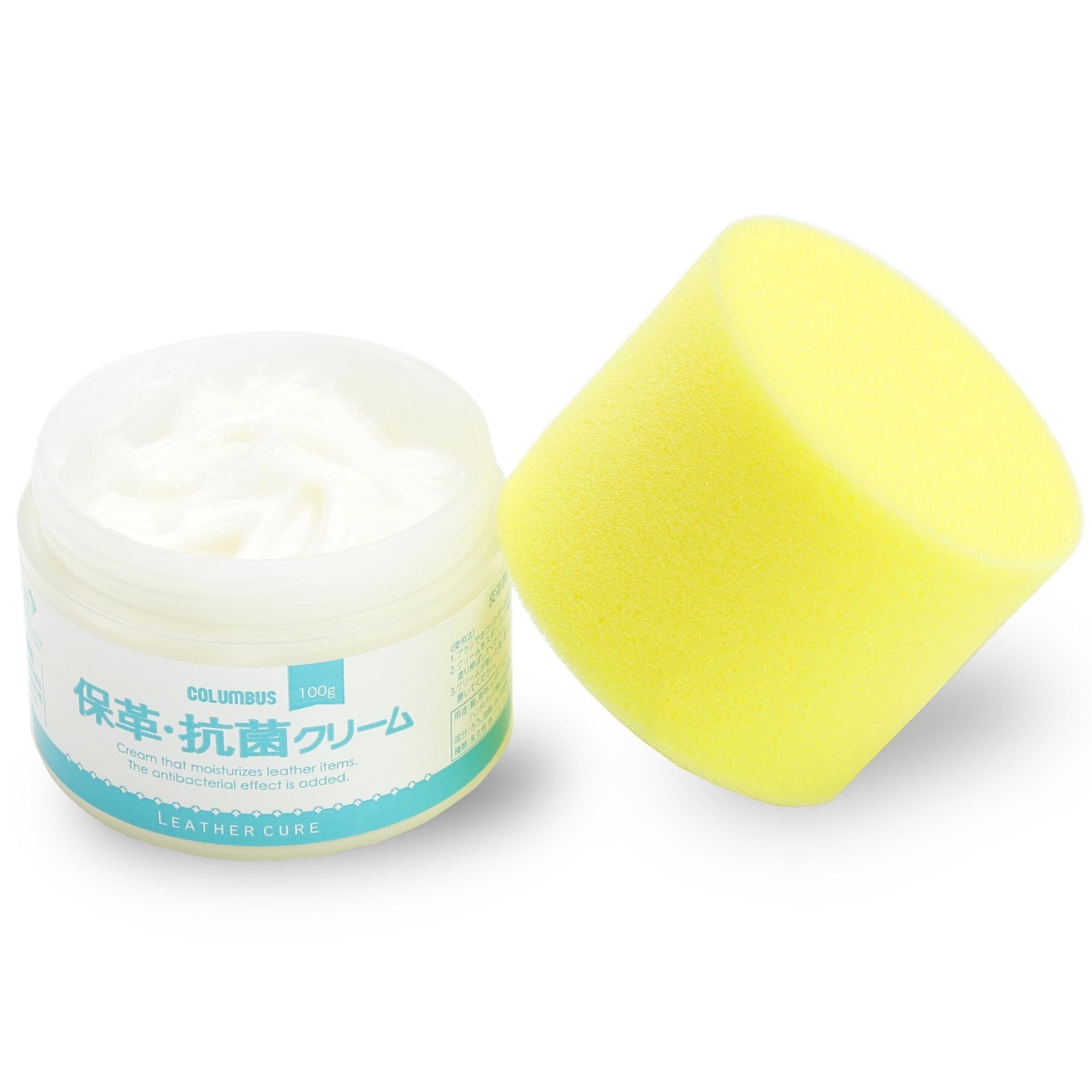 [コロンブス] 革製品のお手入れ 大容量 デリケートクリーム レザーキュア 保革 抗菌 レザークリーム 溶剤不使用/塗布用スポンジ付き ムショク 100g