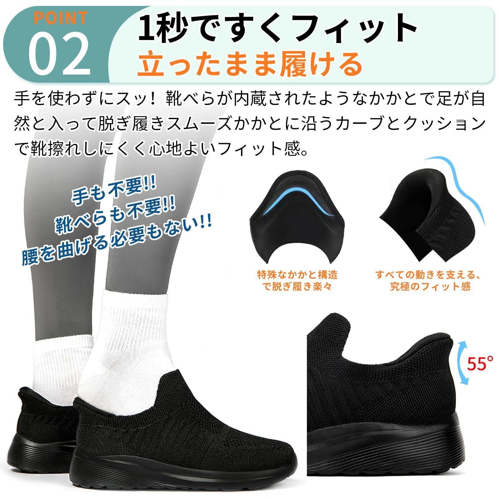 【立ったまま簡単に履けるデザイン】忙しい朝でも、靴べらなしで立ったままで簡単に履けるデザイン。靴紐やバンドの調整も不要で、準備時間を大幅に短縮できます。家事や育児に忙しい方や、通勤を急ぐビジネスマンに最適。朝の時間を有効に使える、便利でスムーズな履き心地を提供します。