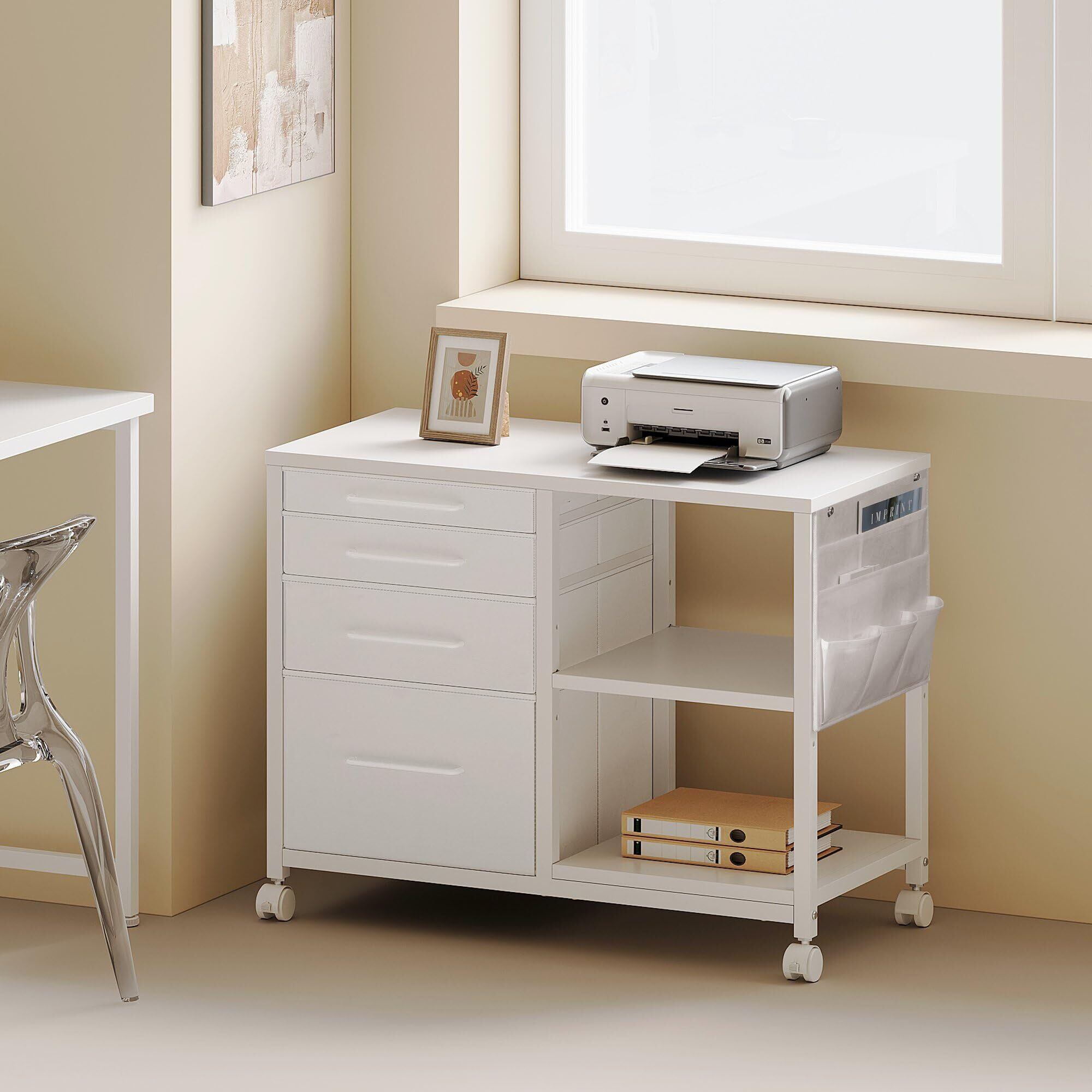 YeTom サイドキャビネット デスクワゴン 布製 袖机 層板付き サイドワゴン 4段 オフィスワゴン A4対応 プリンター台 大容量 キャスター付き デスク下収納 幅750*奥行400*高さ650mm ビンテージ