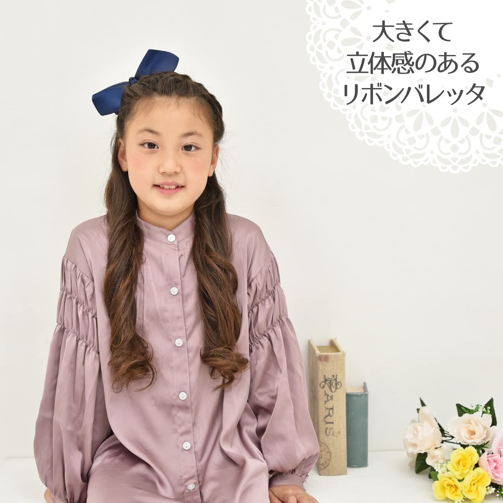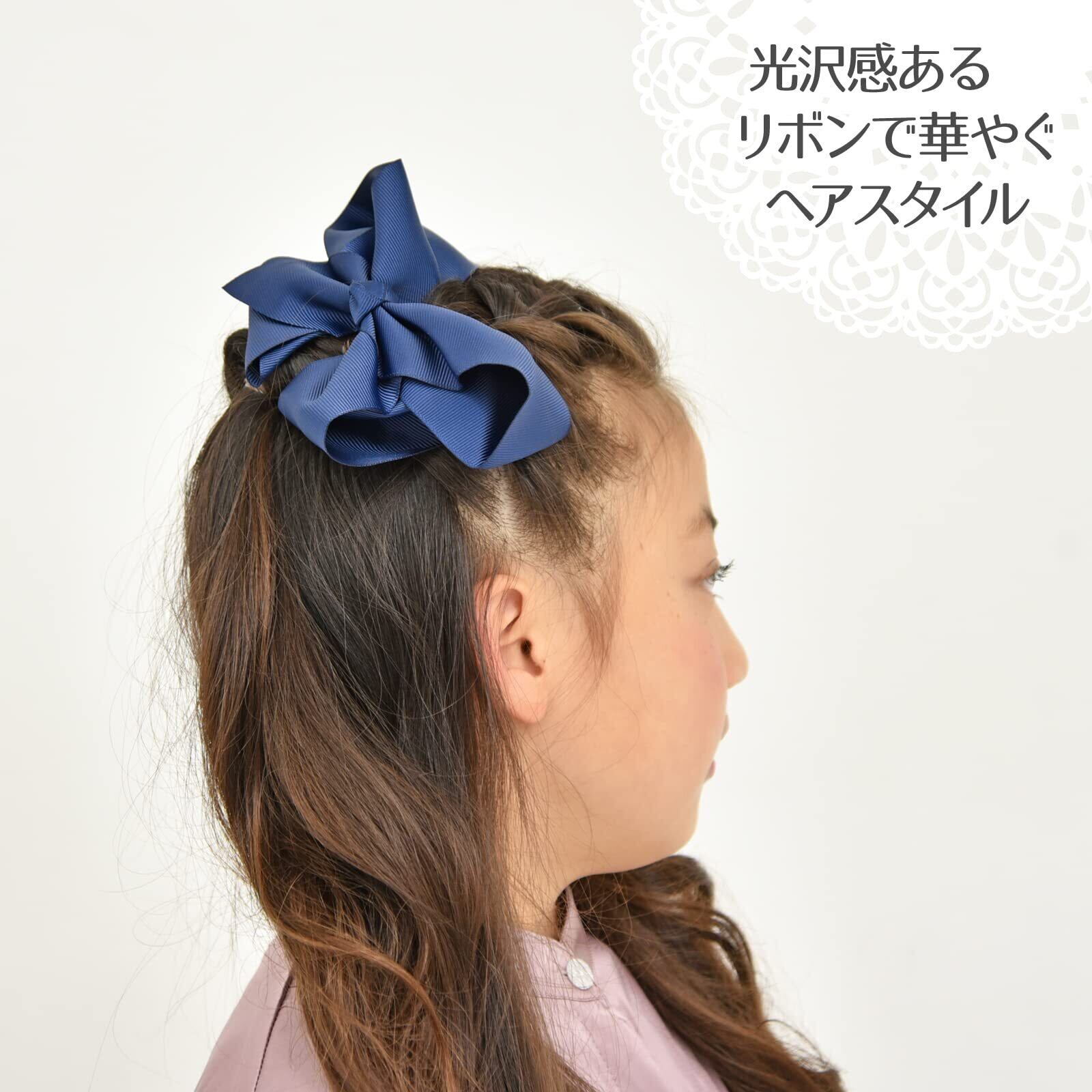 バレッタ リボン 大きい 女の子 子供 ふんわり ヘアアクセサリー おしゃれ ヘアピン 髪留め 髪飾り かわいい クリップ パーティ 発表会 結婚式 卒業式 入学式 13cm (ネイビー)