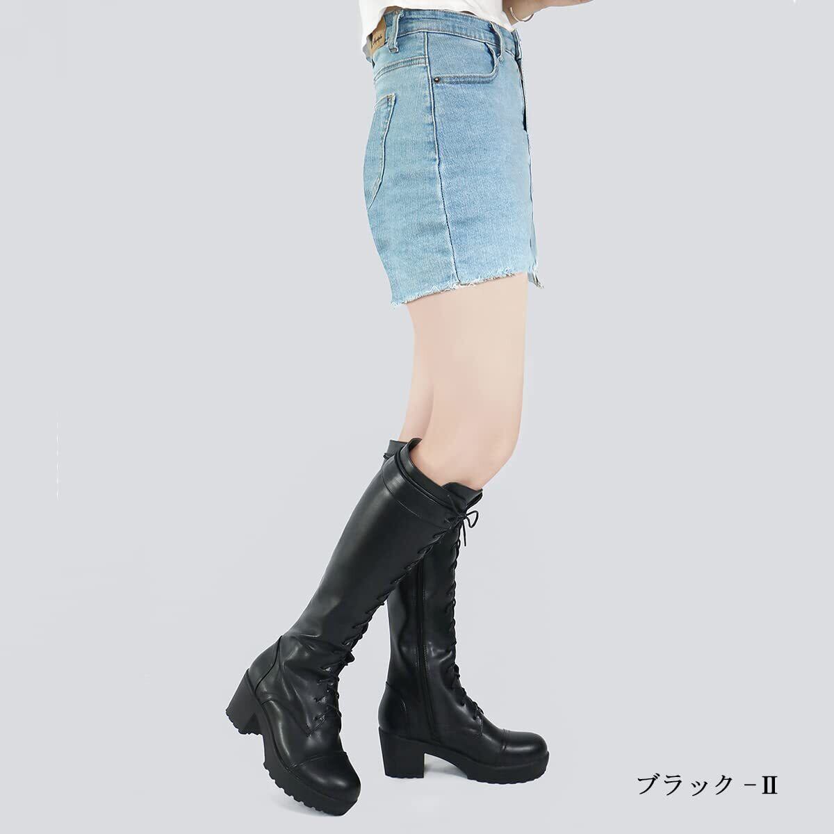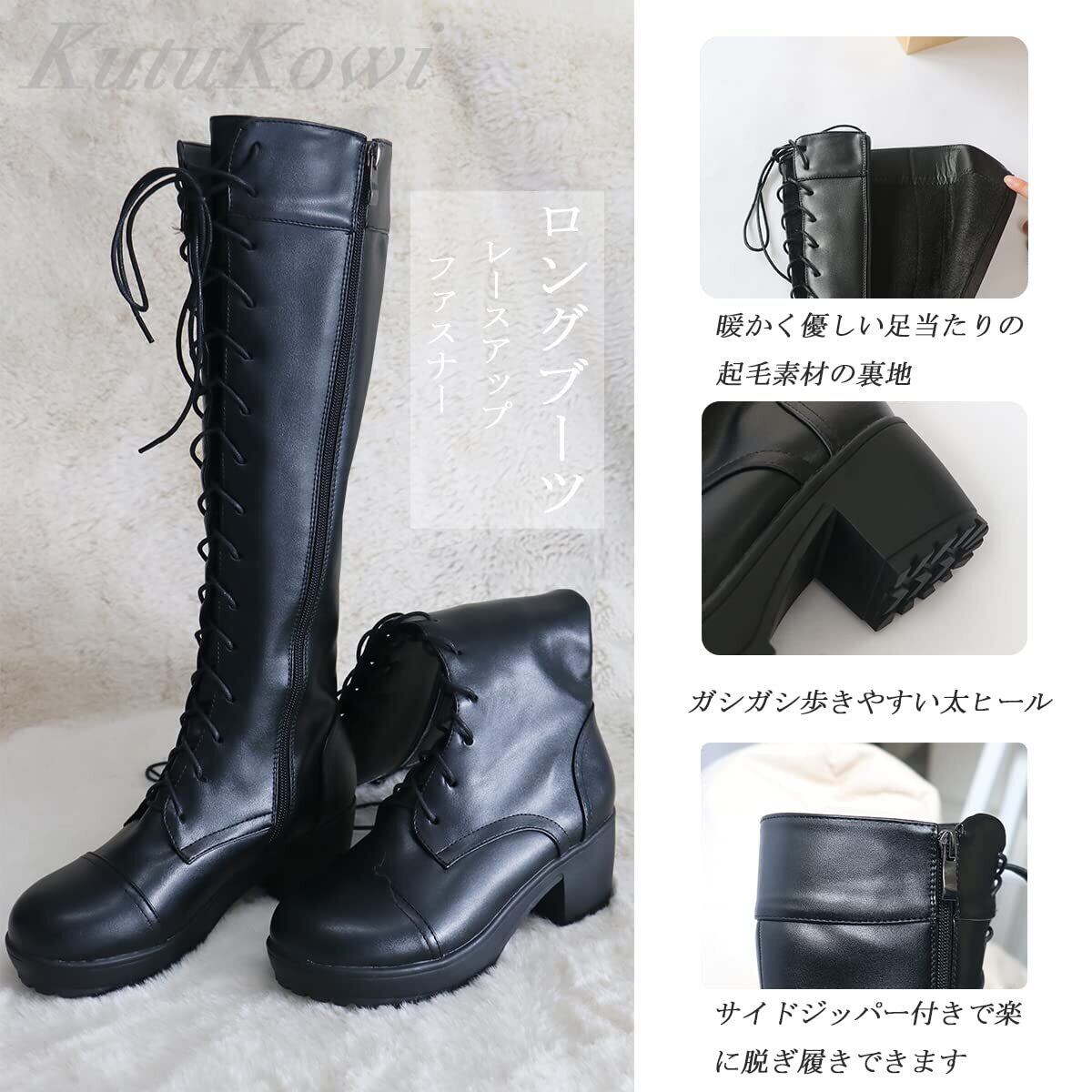[KutuKowi] レディース 厚底 サイドジッパー ロングブーツ 編み上げ ヒール 厚底ブーツ 大きいサイズ