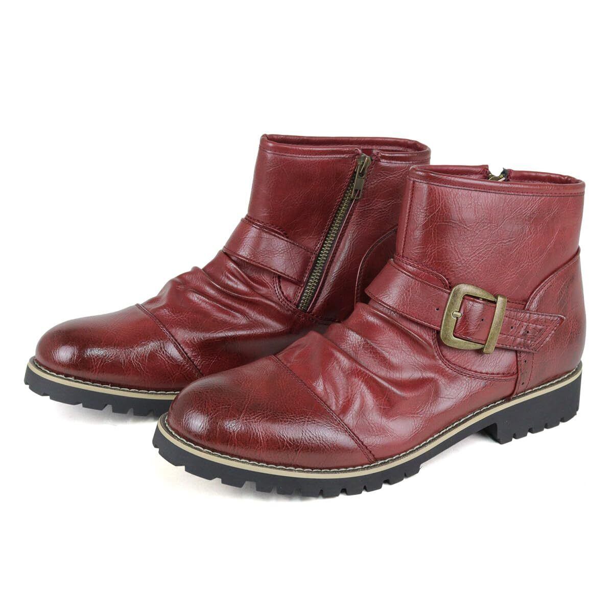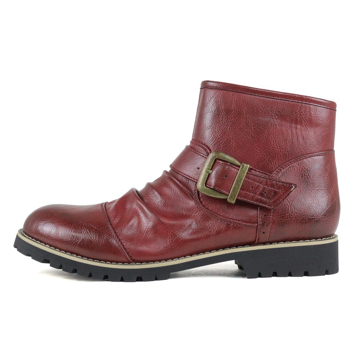 [デデス] ブーツ メンズ サイドジップ エンジニア ドレープ ショート タンクソール 3E PUレザー 合成皮革 スエード ミドル カット バイクブーツ 黒 ブラック ブラウン おしゃれ No.5111