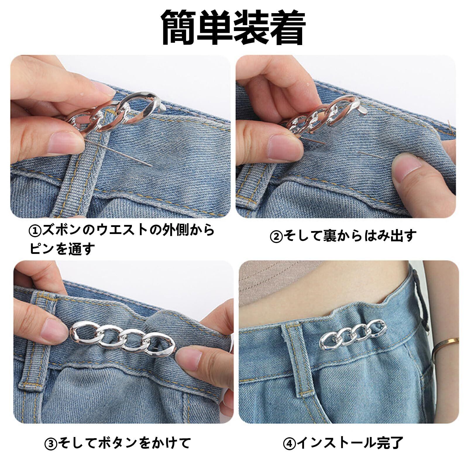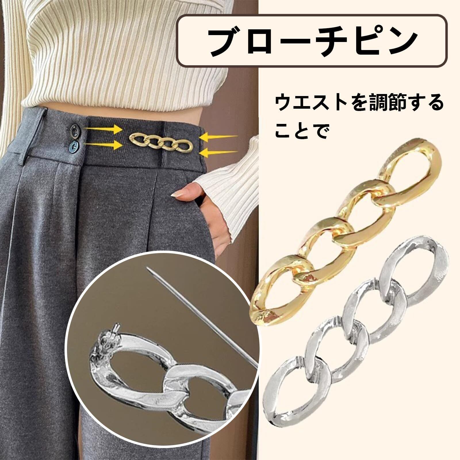 【商品のサイズ】長さ:6 cm、幅:1.3 cm、数:10個セット、色:ゴールドとシルバー。軽量、持ち運びに便利。簡単取り付け:①対象のズボンをつまんでサイズを調整します。②つまんだ箇所をバックルピンで留めれば完成です。