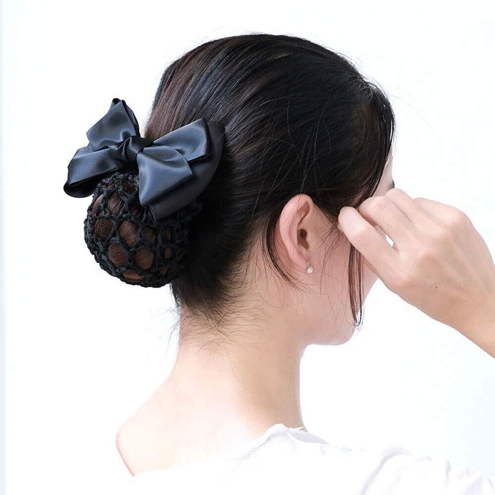 shefun シニヨン ネット付 バレッタ リボン シンプル ヘアクリップ 黒 JP114