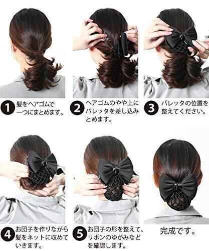小ぶりのリボンが大人らしい可愛さを演出。 また余分な装飾がないのでオフィスやお仕事、冠婚葬祭でも活躍します。 就職活動に、接客に、ダンスの練習に、和装にも合います。 簡単に、きちんと感が断然アップ! 髪の毛が短くても、簡単に美しくまとまります。