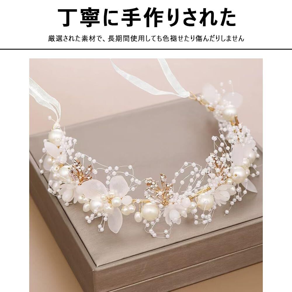 【素材とデザイン】当商品は、リボン、人工真珠、合金を使用して手作りされた華やかな花冠髪飾りです。その優れた品質により、長持ちし、繊細で魅力的な仕上がりを実現しました。結婚式や特別な日のお祝いにぴったりのアイテムで、貴女の特別な瞬間をより華やかに彩ります。