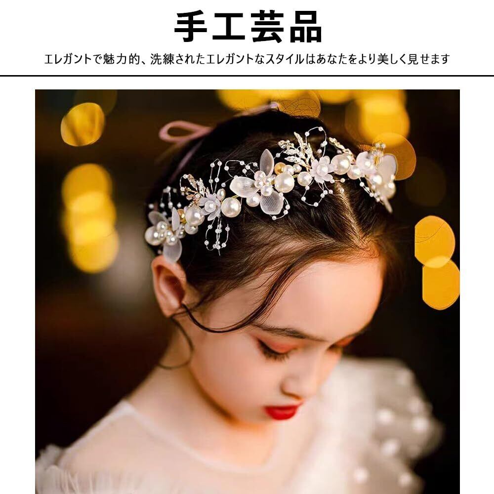 花冠 髪飾り フラワーヘッドピース 結婚式 髪飾り レディースファッション 子供ヘッドドレス ヘアアクセサリー 可愛い 花飾り パール デザイン ヘアバンド 入披露宴 卒業式 入学式 パーティー ダンス 写真撮影にも最適 (ホワイト)