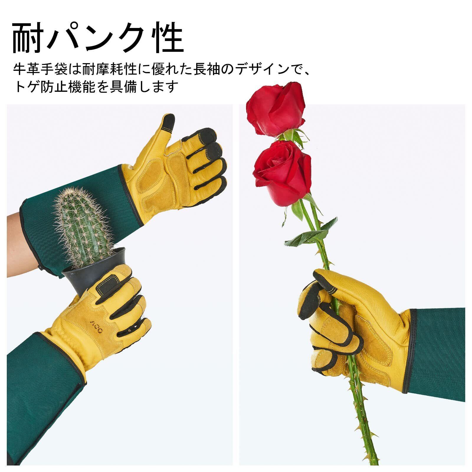 [Vgo...] ガーデニング手袋, ロングガーデニンググローブ, 耐摩耗性合成皮革, レディース メンズ ガーデニンググローブ, タッチスクリーン対応, ガーデニンググローブ, 長袖, 草刈り, バラの棘を防ぐ