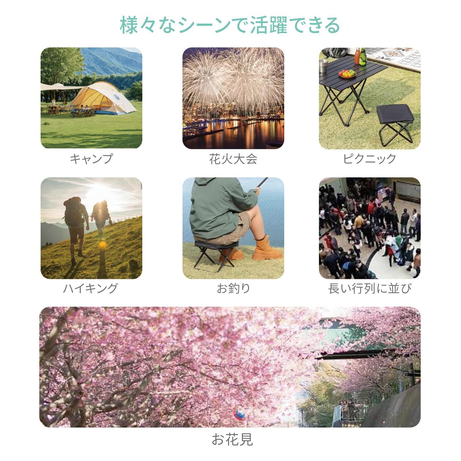 【幅広い用途】 キャンプ、お釣り、バイキング、登山、バーベキュー、お花見、花火大会、運動会、並び列、イベント、ピクニックなど、いつでもどこでも!キャンプとか野外活動の時以外でも、ちょっと外でする作業とかガーデニングの時、フェス、庭でのリラックスタイムなどにも使えて便利! 防災常備品としてもご利用!