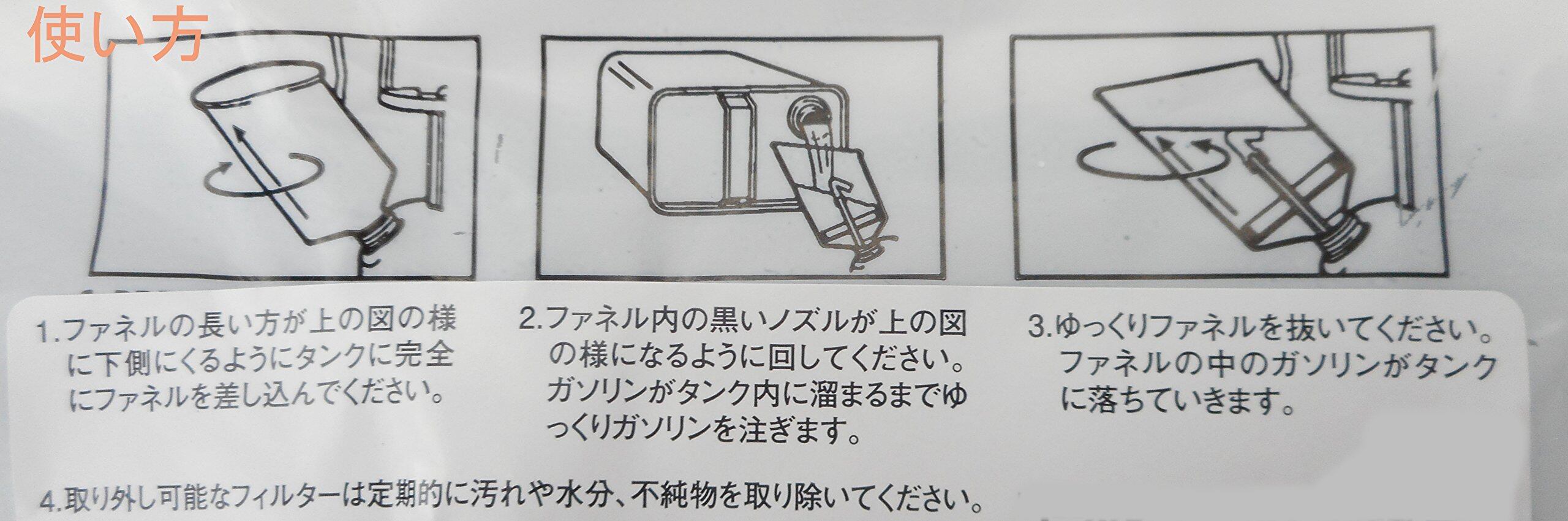 【ガソリンを戻す際にも使える】タンク内の結露によるサビや万が一の燃料漏れを避けるため、使用後に余ったガソリンは極力ガソリン缶に戻すことが推奨されます。その際にファネルをガソリン缶側に差し込むことで注ぎやすくすることができます。