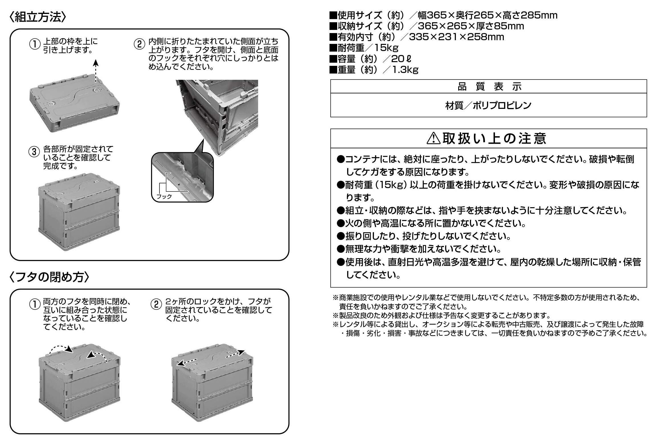 容量:(約)20l、仕様:積み重ね可能(3段まで)