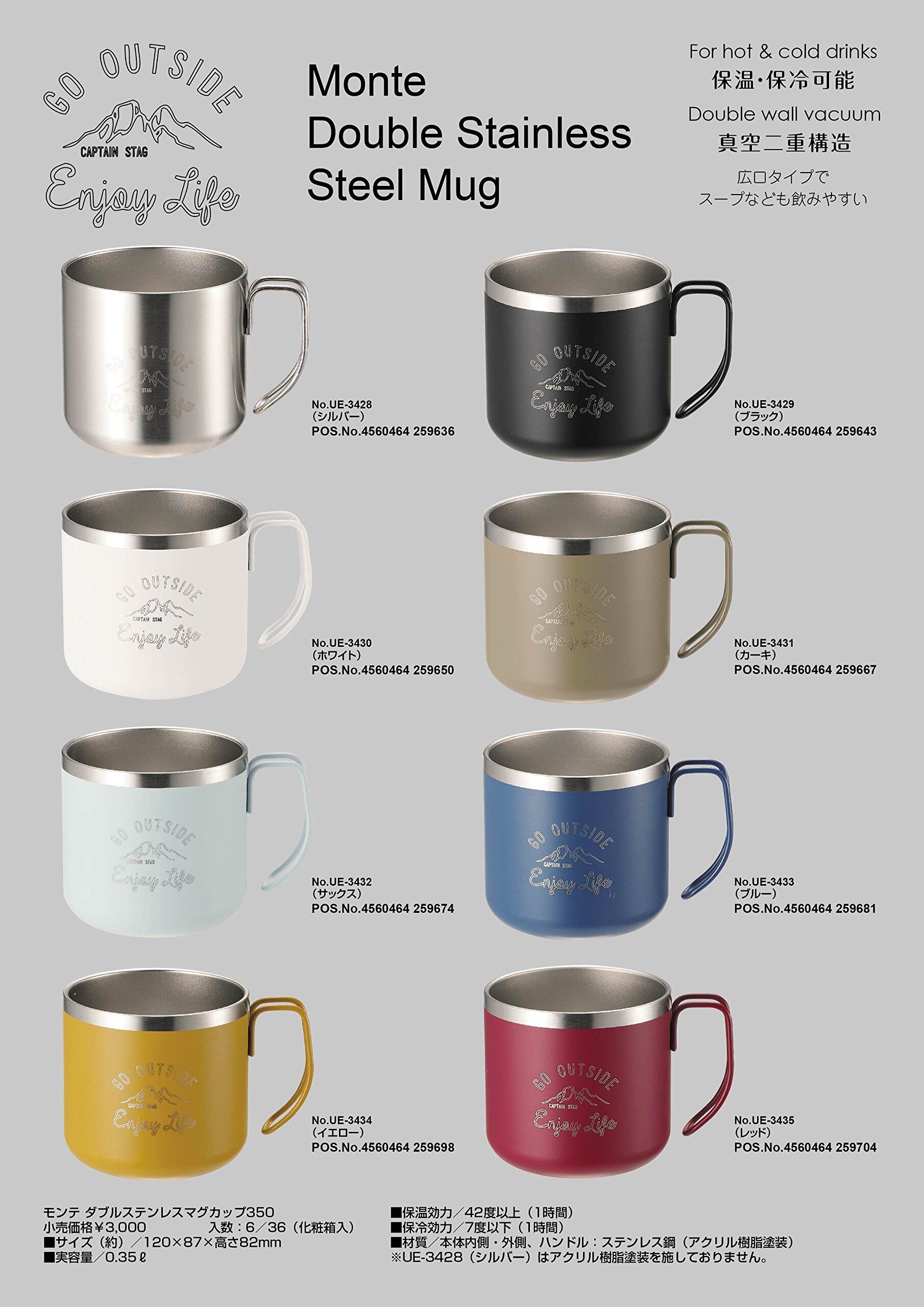 キャプテンスタッグ(CAPTAIN STAG) マグカップ コップ ダブルステンレス 真空断熱 保温・保冷 350ml モンテ
