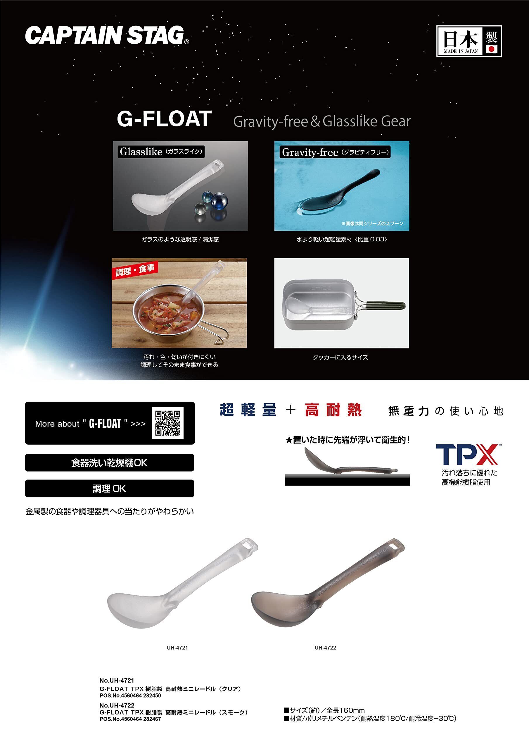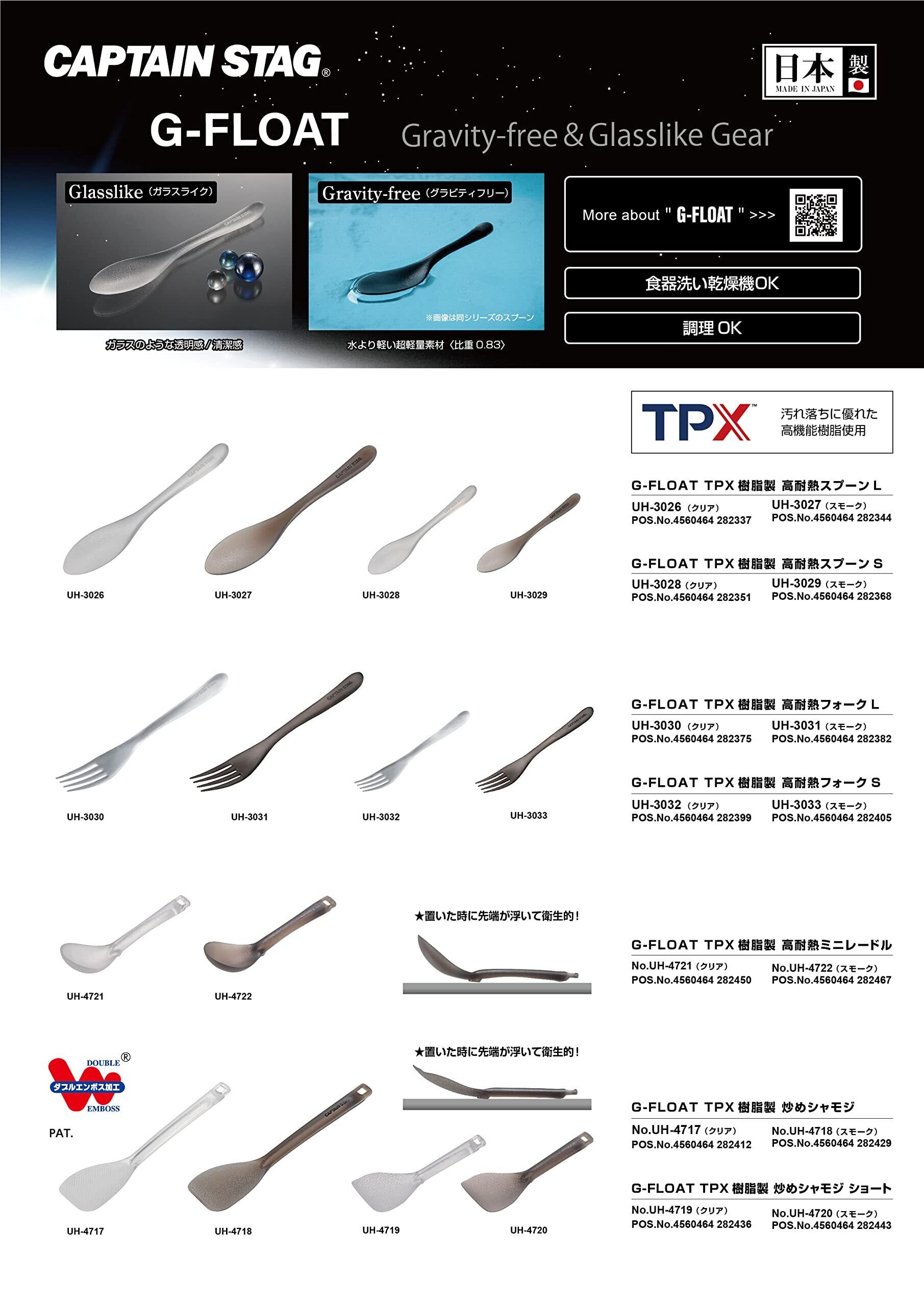 キャプテンスタッグ(CAPTAIN STAG) カトラリー キッチンツール スプーン フォーク しゃもじ ターナー レンゲ TPX樹脂製 高耐熱 日本製 【クリア/スモーク】 G-FLOAT