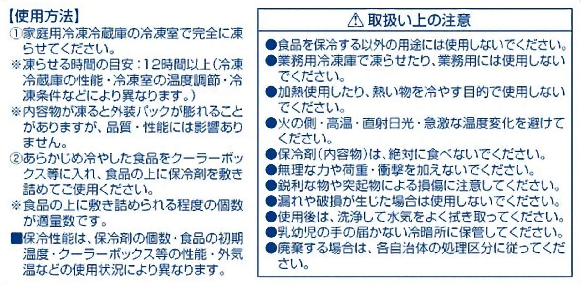 備考:冷凍庫で凍らせてください。繰り返し何度でも使えます。