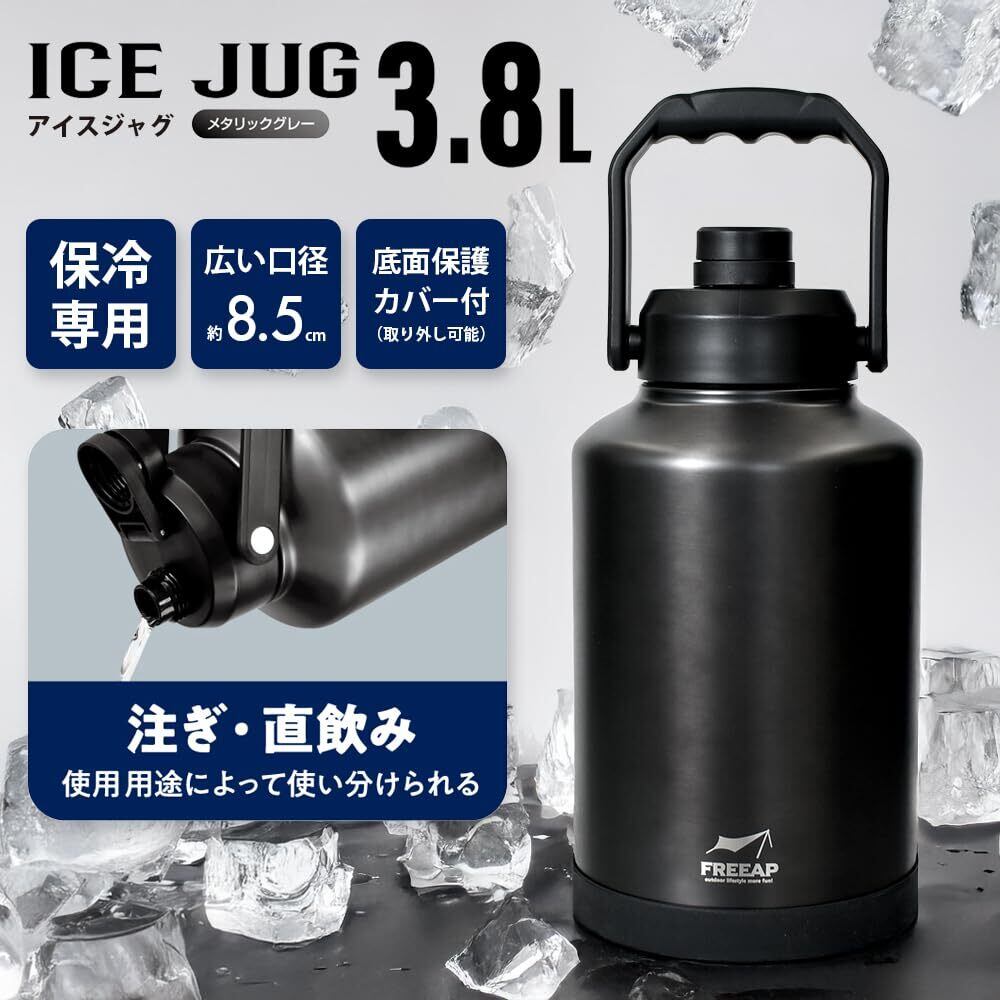 FREEAP アイスジャグ 氷入れ 3.8L 水筒 スポーツボトル アイスタンク 幅16.3×奥行16.3×高さ32cm アイスコンテナ キャンプ 最強
