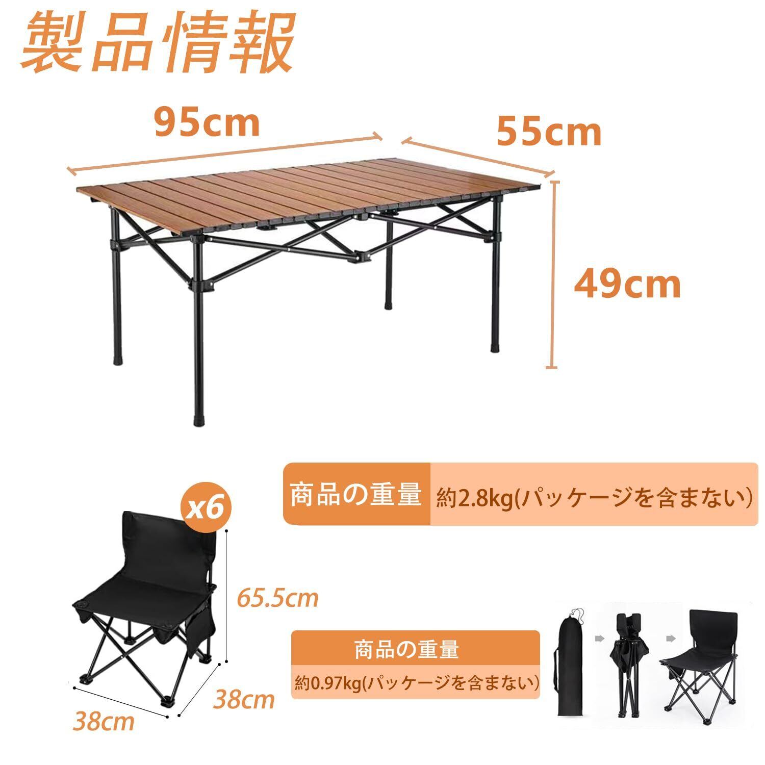 HEEOREV アウトドア テーブル チェアセット キャンプ テー ブル 7点セット(55*49*95CM、、木の色) 屋外用折りたたみ椅子 自動運転ツアー ピクニック テー ブルと椅子 組立簡単 軽量 防災 アウトドア キャンプ 釣り ピクニック バーベキュー キャ ンプ用品 花火大会 野外 テント ガーデン 【収納 袋付き テーブル1台につき収 納袋1枚 チェア1脚につき収 納袋1枚 】