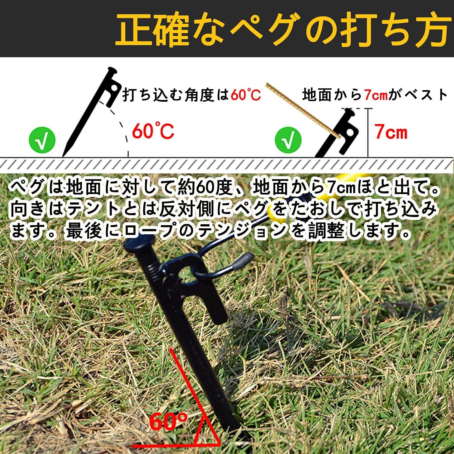 【収納袋付き】 スチール製ペグが重いのため、収納ケースはいつも破れるという悩みがお客様がいると思いますが、この商品には600Dオックスフォードで作られた収納袋がついております。収納袋が破れる恐れがなかなかないと思います。