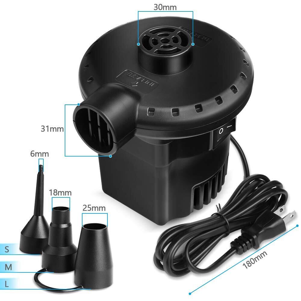 【高実用性】浮き輪、ゴムボート、エアベット、ビニールプールなどなどに適用します。また、布団や衣替えの真空収納にもお役に立ちます。内部には排熱ファンがあり、過熱による危険を防ぎます。※ご注意:風船、バスケットボールや自転車には適用されません。