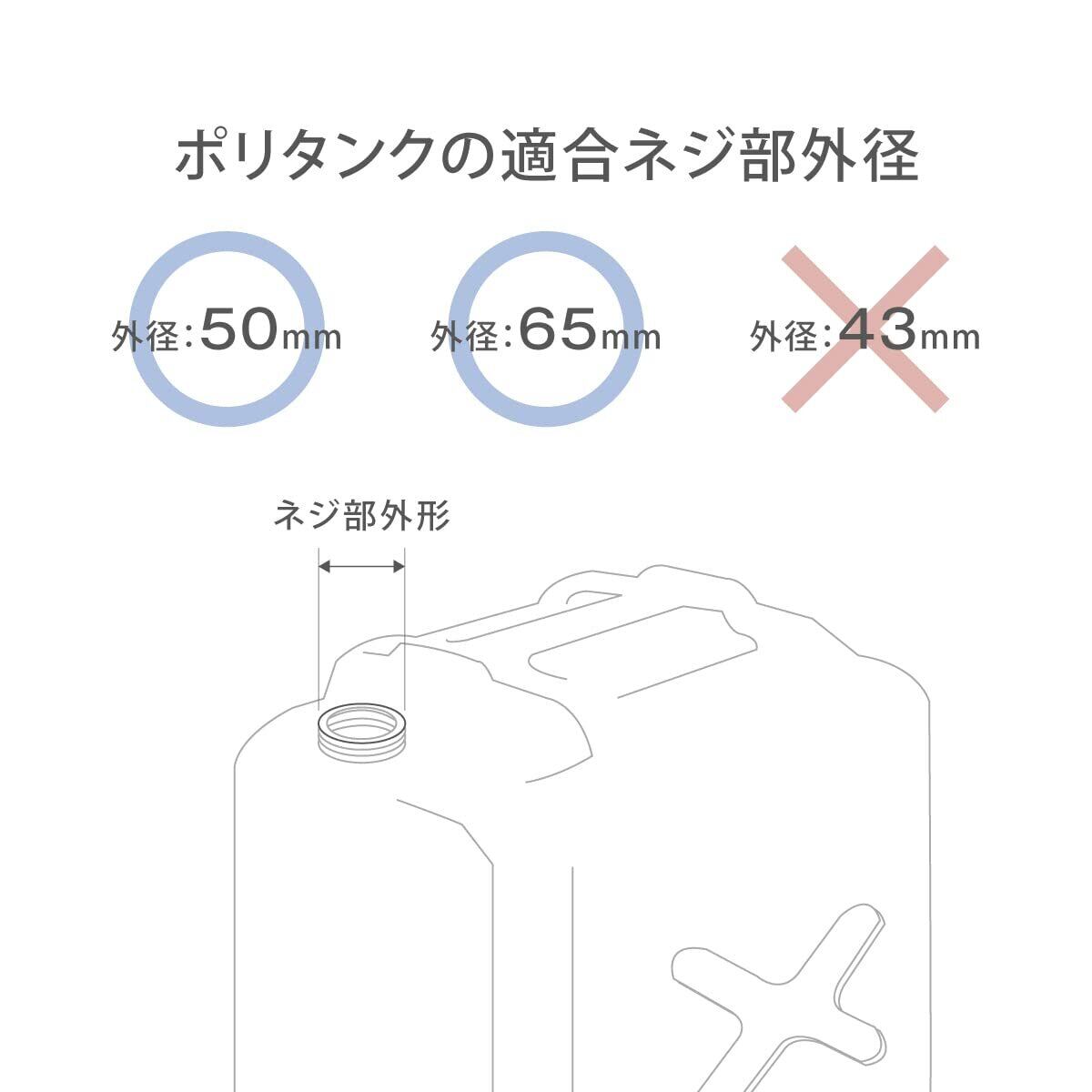 ※注意事項:給水口ネジ部外径50mm・65mm専用となり、広口タイプには使用できません。(ポリタンクは付属しておりません。)