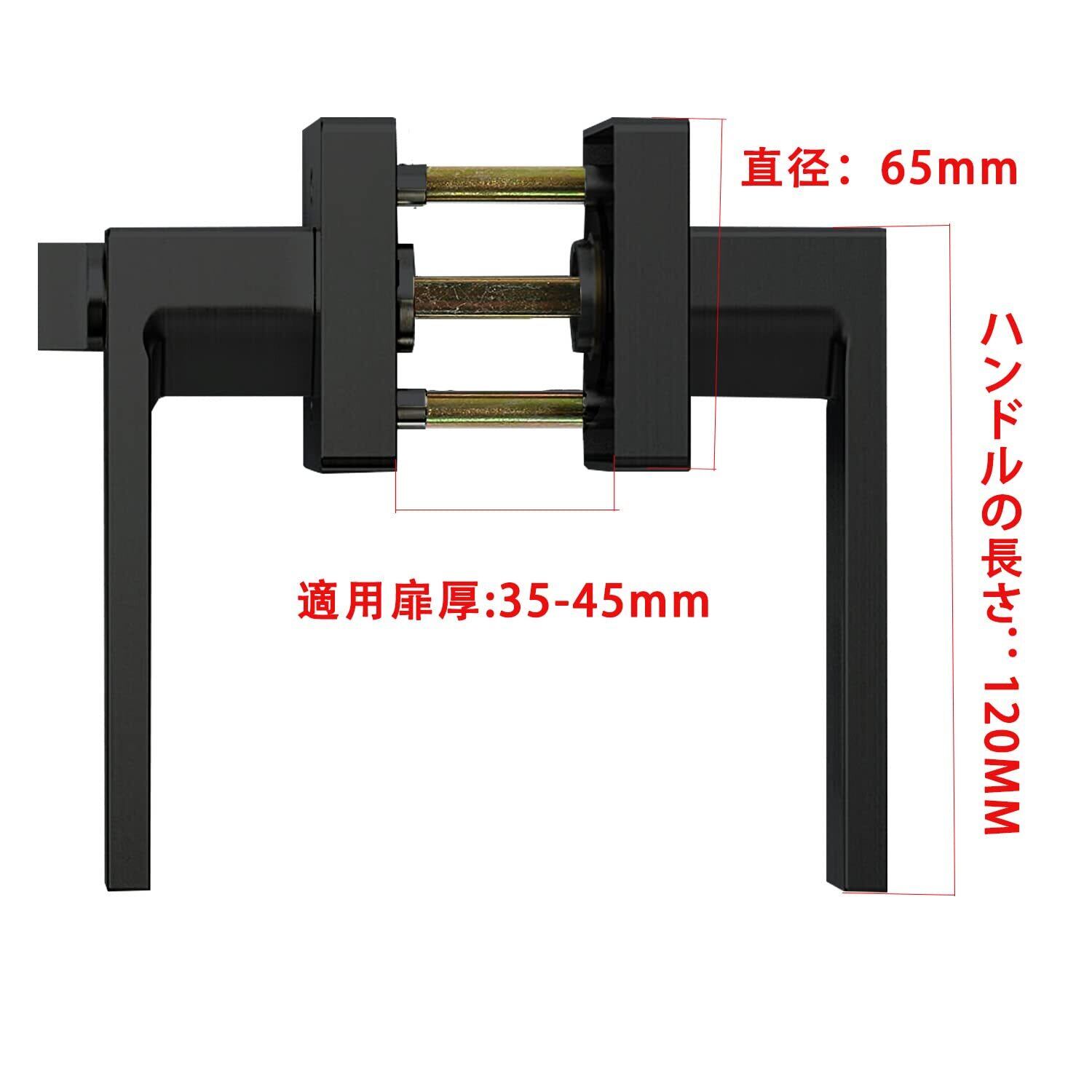 堅塁金物 ドアノブ 空錠 鍵なし 黒 レバーハンドル 通路や廊下に適用 下向きの回転でドアを開け 軽量化のアルミ合金の主体 適用扉厚30-50mm ラッチは60mmあるいは70mmに調整可能