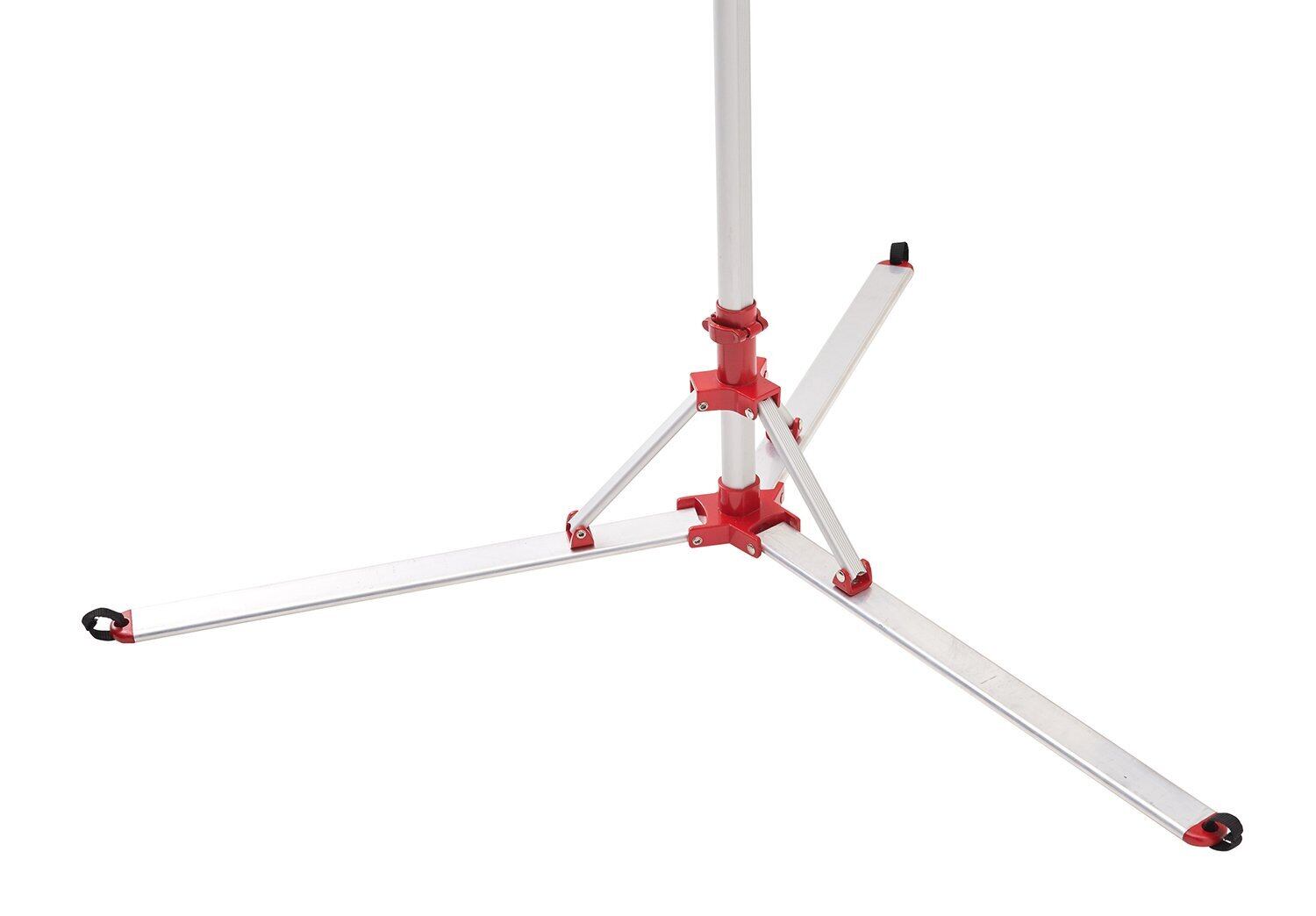【高い安定性】3本の脚部フレームを開いて地面に設置します。地面に対してフラットに接地するので安定性が高く、また足を引っかけてスタンドを倒してしまう危険も少ない構造となっています。