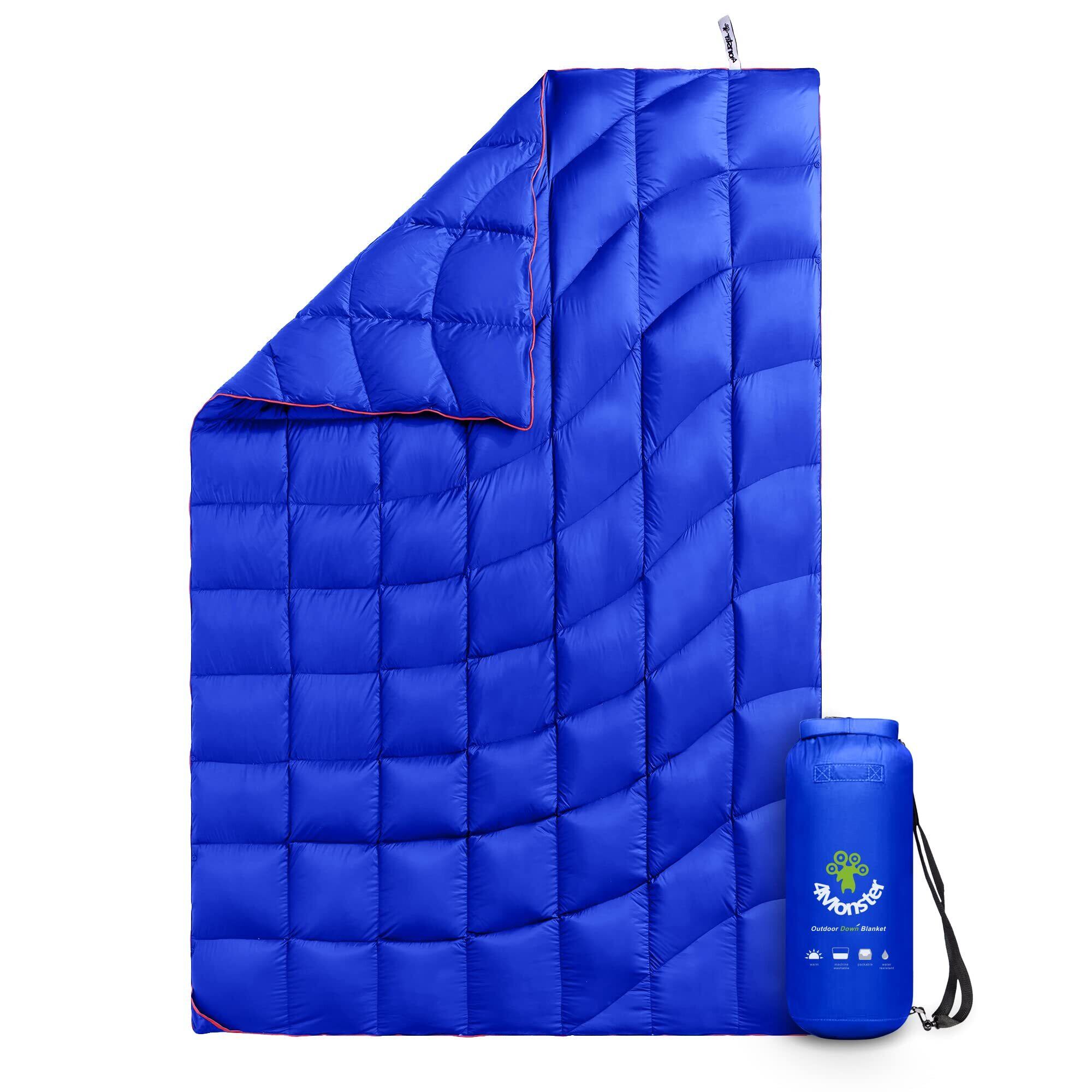 4Monster ダウン ブランケット マルチブランケット 防寒 アウトドア キャンプ 旅行 軽量 防水 防風 コンパクト ひざ掛け 肩掛け 掛け布団 暖かい 柔らかい 収納袋付き 春秋冬使用でき Wave-Blue-L