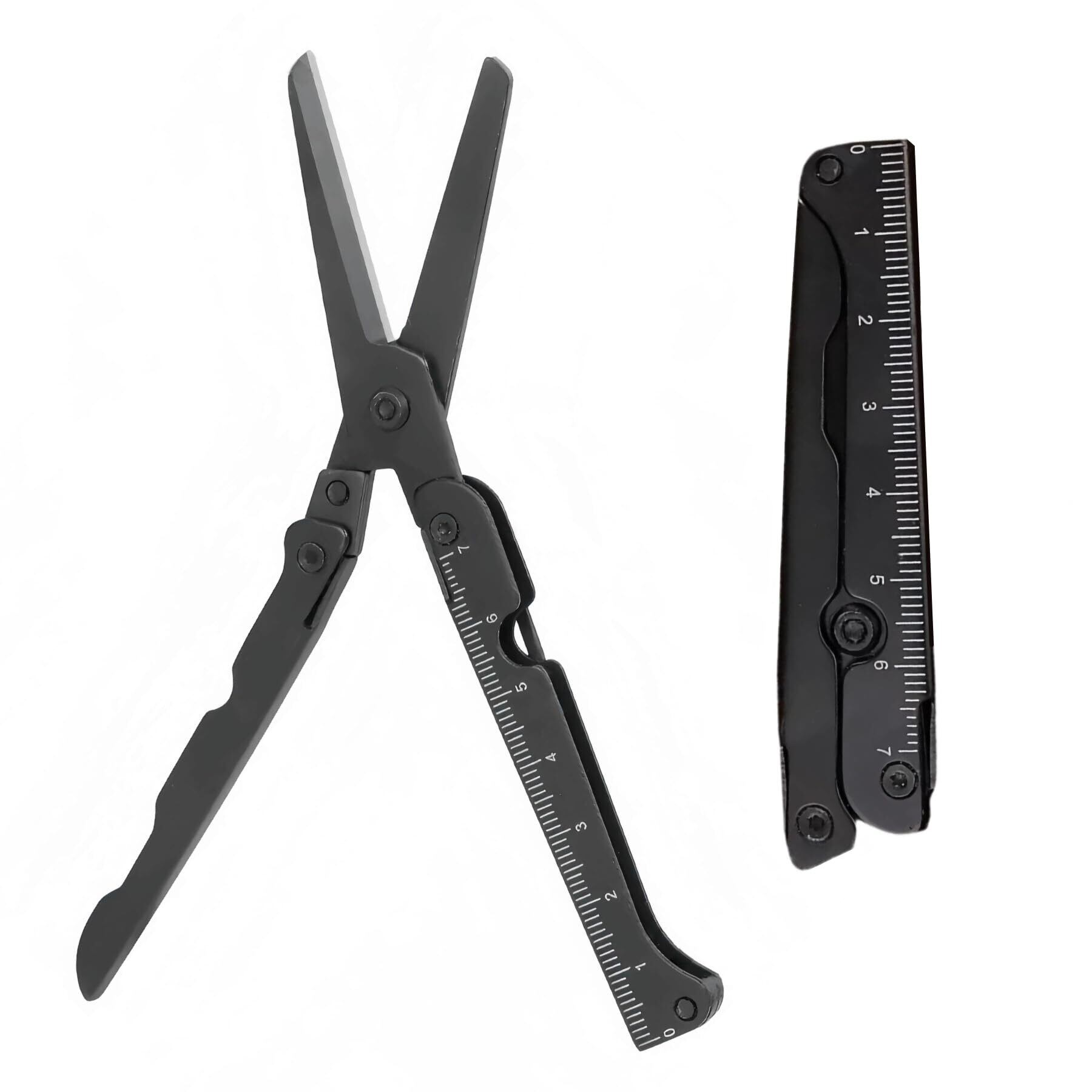 KERURU ハサミ コンパクト 折りたたみ ミニ 携帯 切れ味良い ステンレス製 錆びにくい 目盛り付 小さいはさみ アウトドア用品 キャンプ 釣り 旅行 1個 (ブラック)