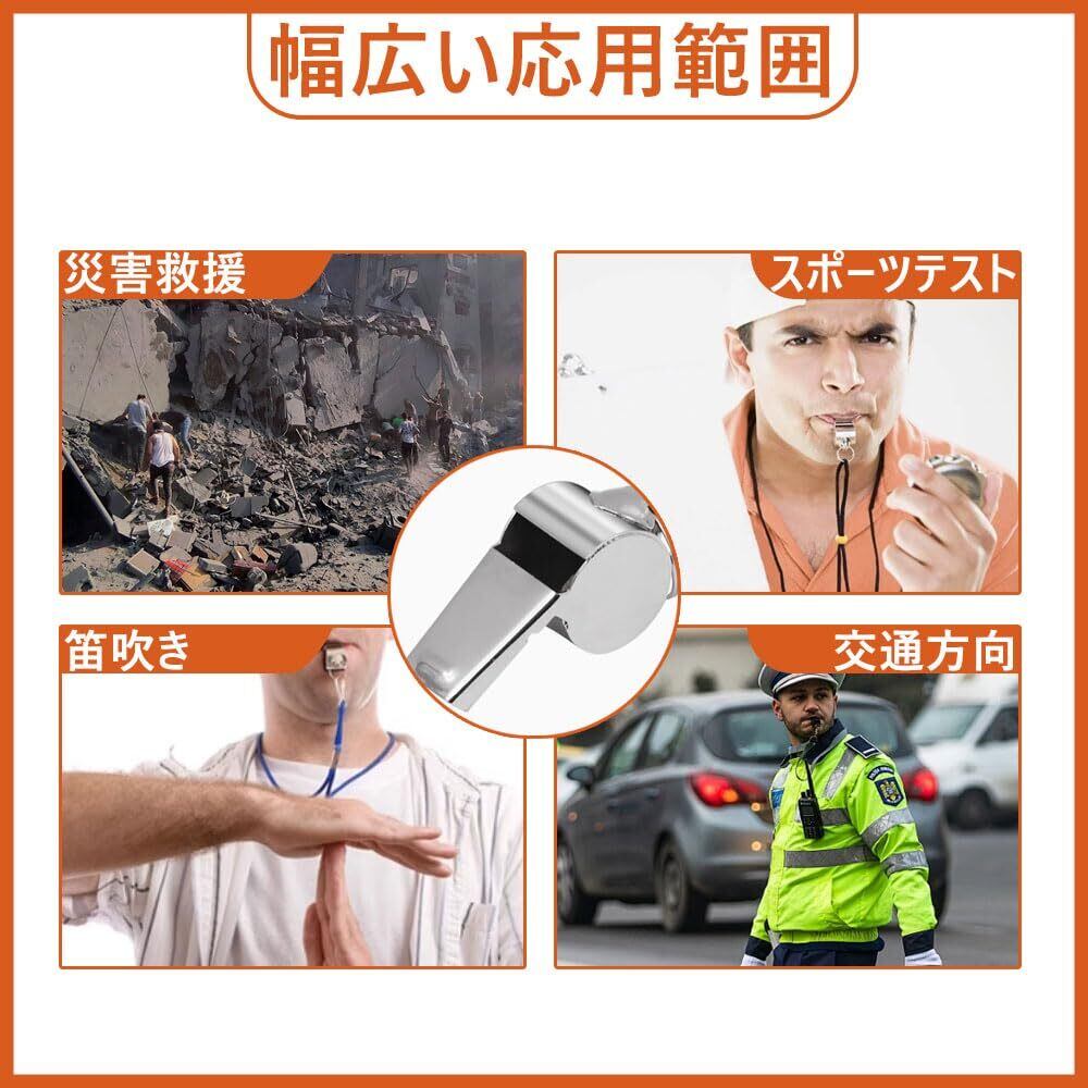 使用範囲】このホイッスルは、救助や救援、災害時の警告、審判の笛吹き、ペットのしつけ、危険警告、休日のお祝いなど、非常に幅広い場面で使用することができます。