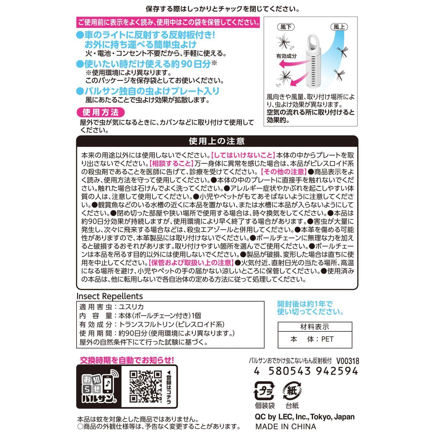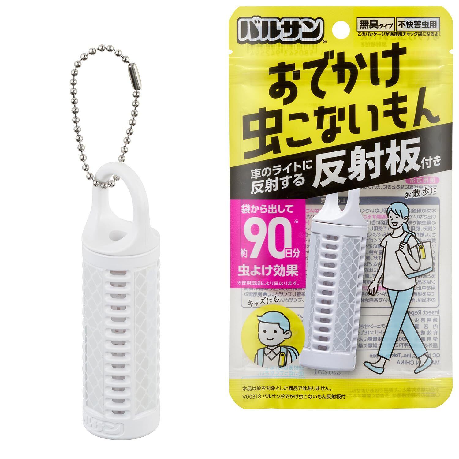 バルサン おでかけ 虫こないもん 反射板付き (虫よけ効果90日) / ボールチェーン付/無臭タイプ/不快害虫用