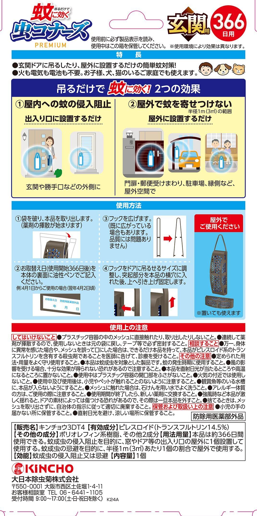蚊に効く 虫コナーズプレミアム 虫除け 蚊除け 吊り下げネット 玄関用 366日 無臭