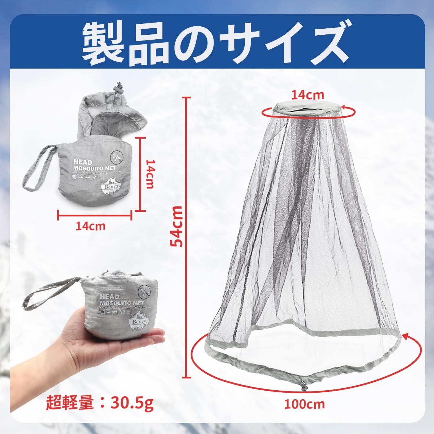 [Benvo] 虫除けネット アップグレード版 長さ54cm 防虫 ヘッドネット 釣りやアウトドアに キャンプ 野外作業 蚊対策グッズ 通気性 虫よけネット フェイスガードネット 調節コード付き 収納袋入り モスキートネット(2枚セット)