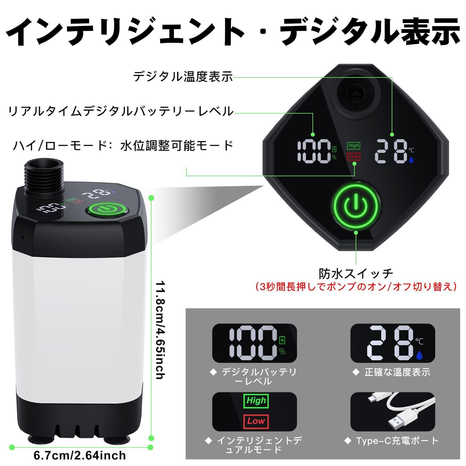 【防水で頑丈: 底の吸盤デザイン】電動シャワーポンプはIPX7防水等級を持ち、完全に水に浸かることができます、充電口には防水カバーが装備されています、ご使用の際は防水カバーが締め付けられ、使用の安全を確保することにご注意ください。簡易シャワーポンプの底に吸盤のデザインは、シャワーポンプが傾かないようにバケツの底にしっかりと取り付けられていることをします。
