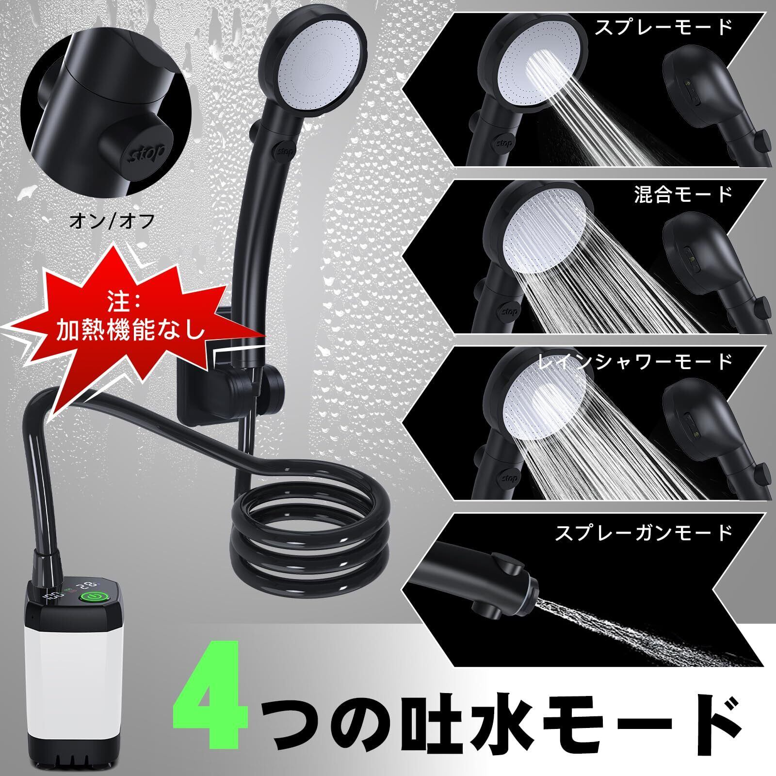 Tipkook ポータブルシャワー【USB充電式 6000mAh】アウトドア 電動シャワー 水流量無段階調節 四つ出水モード 2Mホース 簡易シャワー デ ジタル画面付 キャンプシャワ ー 直射ヘッド&収納袋付き シャワー ポンプ キャンプ 海水浴 サーフィン 旅行 ペットシャワー 水遣り 洗車 植物潅水 防災 停電時用