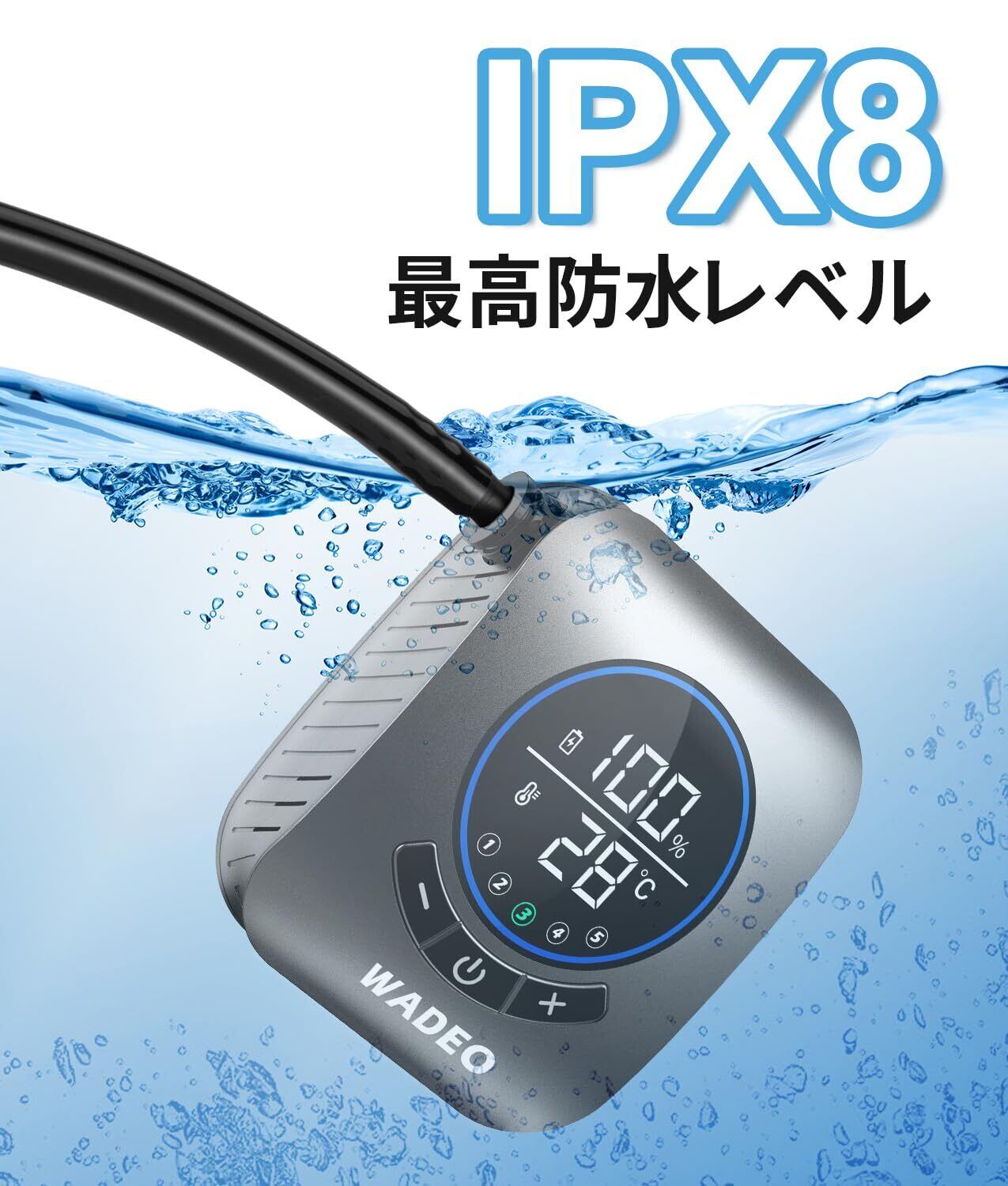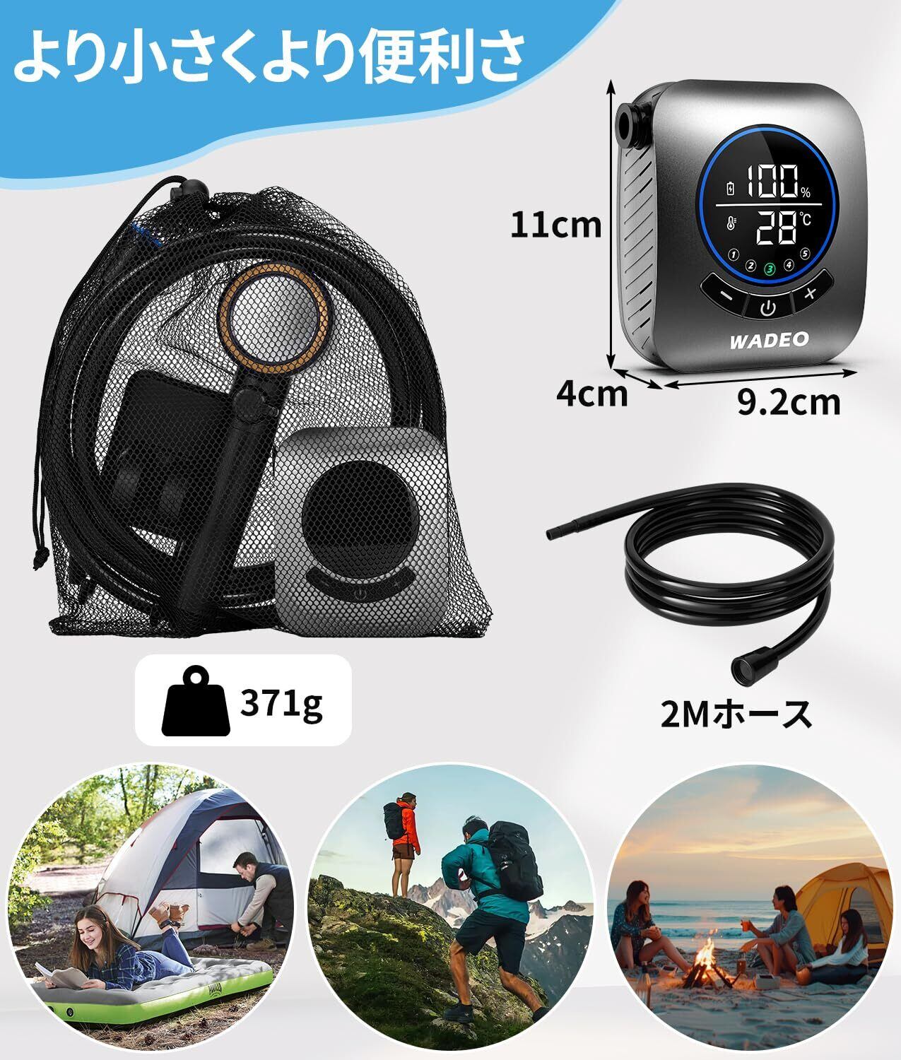 【IPX8防水性】ポータブルシャワー は最高防水レベルIPX8を持ち、完全に水に浸かることができ、充電口には防水カバーが装備されています。ポンプを水に入れる前に充電ポートにある保護蓋はちゃんと閉めてください。